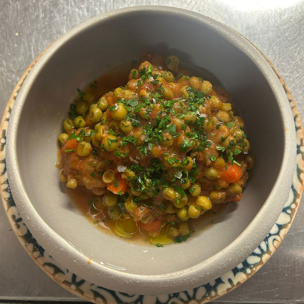Piatto di servizio ciotola ovale cn bordo , appoggia un crostone di pane tostato sul fondo della ciotola e versa sopra le seppie.